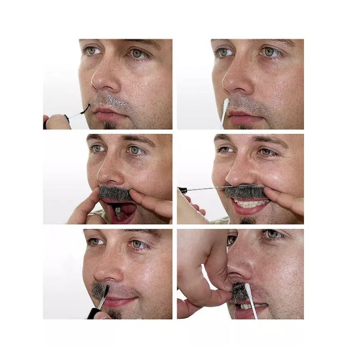 Tipp: Bärte und Schnäuze aus Echthaar können wie das eigene behandelt werden - kämmen, flechten, verformen. Färben sollte man es jedoch nur selten, da die Tragfläche aus Tüll bei zu starker Belastung reissen kann.