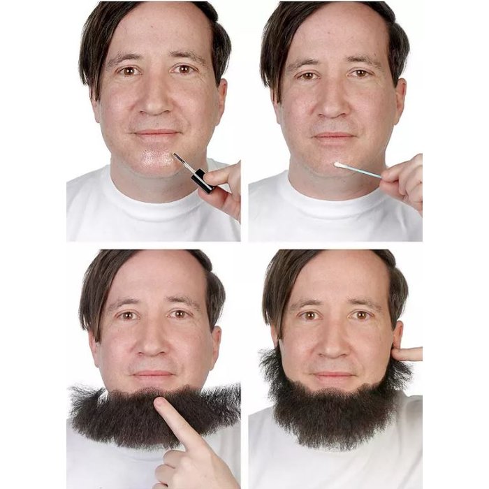 Handgeknüpfter Vollbart und Schnurrbart aus Echthaar, 2 x 2 ml Mastixkleber