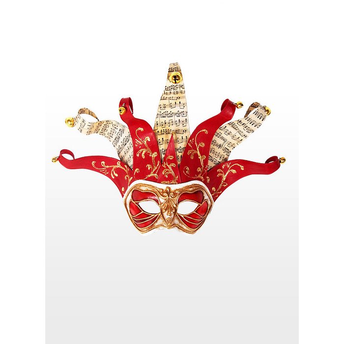 Lieferumfang: 1 kunstvolle Maske mit schwarzem Halteband zum Knüpfen, in den Farben gold, rot und weiss