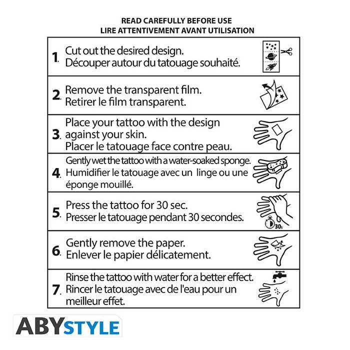 - Einfach und schnell anzuwenden: Drücke das Tattoo mit einem in Wasser getränkten Schwamm 30 Sekunden lang auf deine Haut, und fertig!