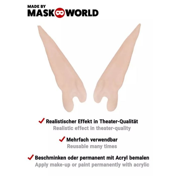 Die Ohren bestehen aus hochwertigem Latex und lassen sich mit dem beiliegenden Mastixkleber sicher befestigen.