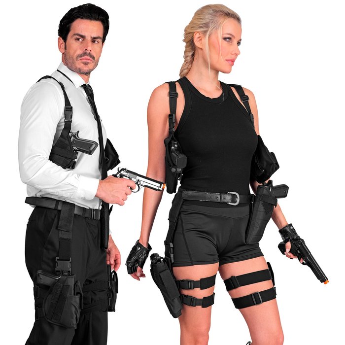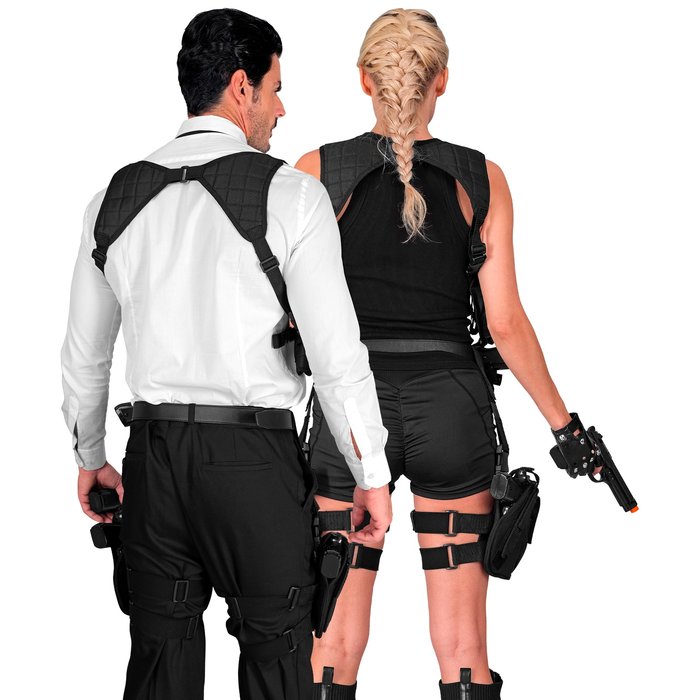 Mit diesem schwarzen taktischen Holster für das rechte Bein bringst du sofort Action in dein Kostüm. Das robuste Design sorgt für einen authentischen Look und passt perfekt zu Outfits im Agenten-, FBI- oder Abenteuerstil wie Tomb Raider.