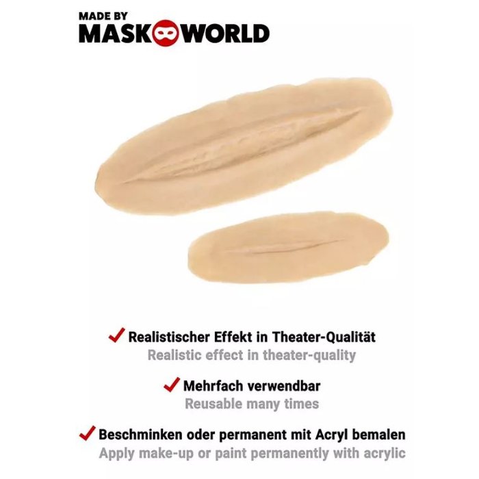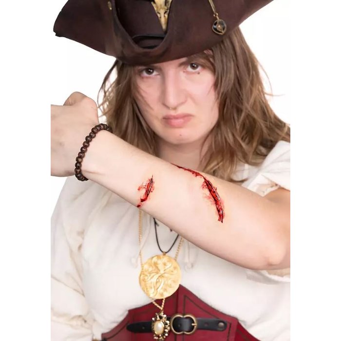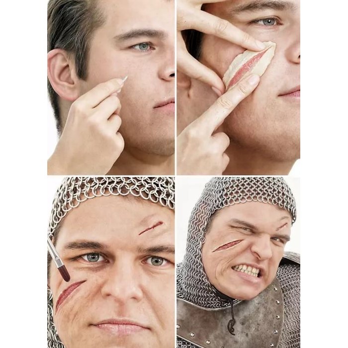 Ideal für Halloween, Horror Mottopartys, Theater oder Filmprojekte. Die Wunden können zusätzlich mit Make up schattiert werden, um Tiefe und noch mehr Realismus zu erzeugen.
