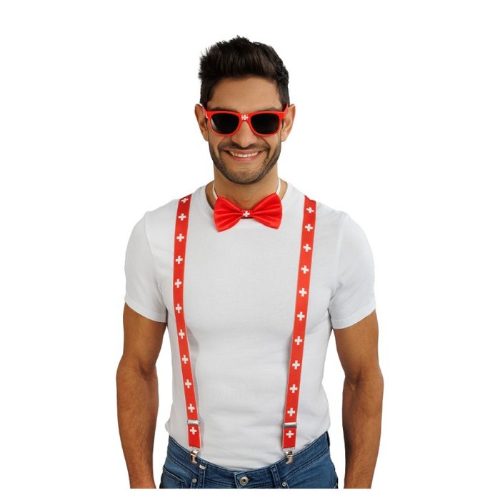 Das weisse Kreuz auf rotem Grund, die Schweizer Fahne ist bestimmt ein wichtiges Utensil um die Fankurve anzuheizen. Weiter gibt es alles Mögliche und Unmögliche mit Schweizerkreuz in dieser Kategorie um die Schweizer mit Schweizerkreuz anzufeuern und so Zeichen zu setzen. Sei dies ein Anzug mit einem Schweizer Fahnenmuster als Fanartikel, Lampions mit Schweizer Flagge, Kerzen mit Schweizerkreuz, eine Perücke mit der famosen Farbanordnung eines Schweizer Kreuzes oder gar ein Korsett in Rot und Weiss für die weiblichen Fans. Selbstverständlich ist das Rot und Weiss so angeordnet, dass ein weisses Kreuz auf rotem Grund zu liegen kommt. Daneben findest du auch Caps, Servietten, Trikots und andere Accessoires. Auch hier sind all diese grossartigen Fanartikel mit einem Schweizer Wappen versehen.