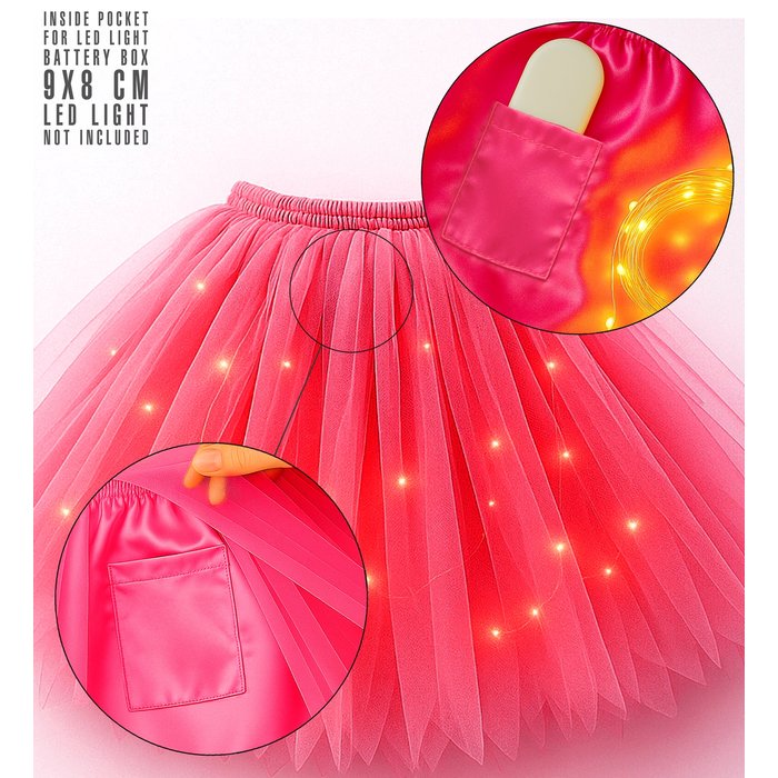 Praktisches Extra: Im Inneren befindet sich eine integrierte Innentasche für LED-Lichter. So kannst du das Tutu optional zum Leuchten bringen und deinen Look noch stärker in Szene setzen. Die LED-Lichter sind nicht im Lieferumfang enthalten.
