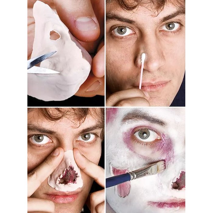 Die Nase wird mit dem beiliegenden Mastixkleber hautfreundlich befestigt und kann anschliessend mit Kunstblut oder Make-up individuell angepasst werden. So entsteht ein verblüffend echter Effekt, als wäre dein Gesicht bereits vom Verfall gezeichnet.