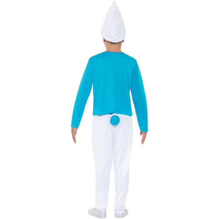 Le costume comprend un haut bleu à manches longues, un pantalon blanc avec des guêtres intégrées et une drôle de queue de Schtroumpf à l'arrière. Le bonnet blanc pointu typique est bien sûr indispensable et donne le look immédiatement reconnaissable d'un vrai Schtroumpf.