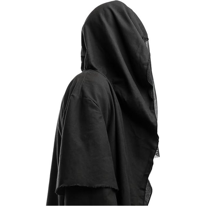 Le costume comprend une longue robe noire avec des manches effilochées et une capuche tombante qui cache mystérieusement ton visage dans l'ombre. La coupe confortable te laisse bouger librement, tandis que la conception double couche avec une veste à capuche supplémentaire reproduit parfaitement le look emblématique des Nazgûl.