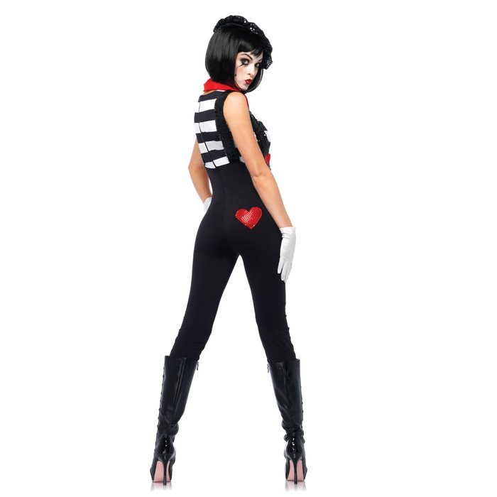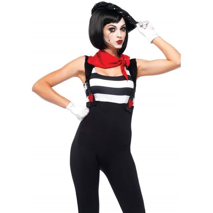 Costume Pantomime Sexy contient: La salopette en stile d'une Catsuit avec blouse attachée, foulard et le bêret