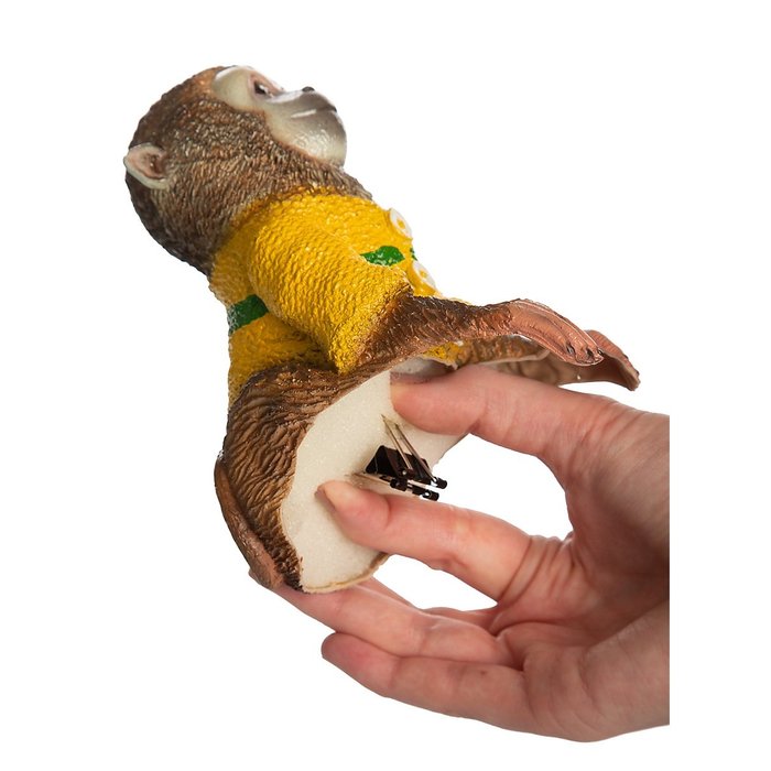 Ce petit singe se fixe à l'aide d'un clip sur l'épaule et vous accompagne partout