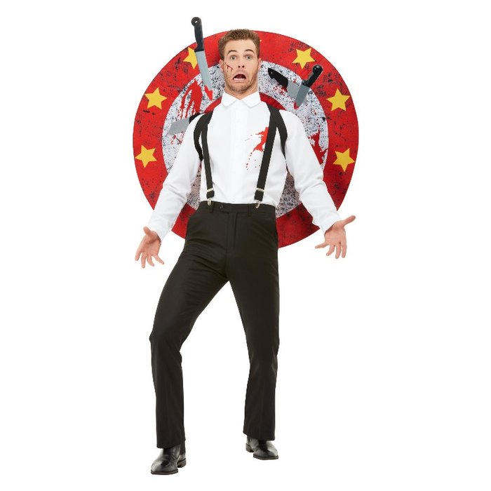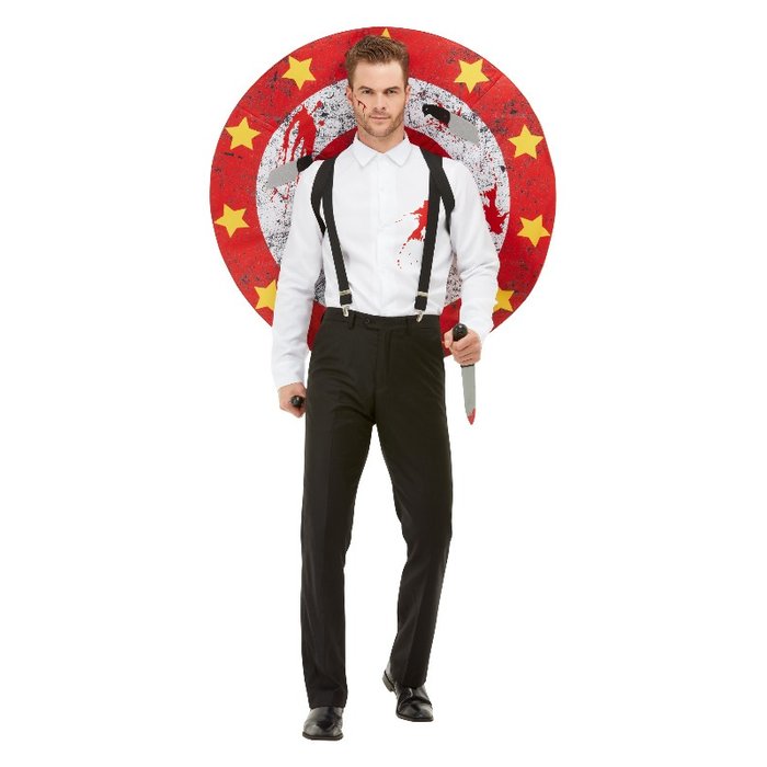 Contenuto: costume con camicia, bretellem bersaglio e coltelli con velcro