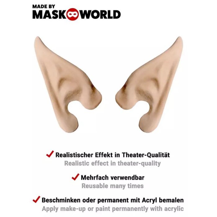 Le orecchie sono fatte di lattice di alta qualità e puoi adattarle perfettamente al tuo tono di pelle con un po' di trucco. La colla mastice inclusa garantisce una tenuta sicura, così il tuo look sarà perfetto per LARP, cosplay, Halloween o feste a tema.