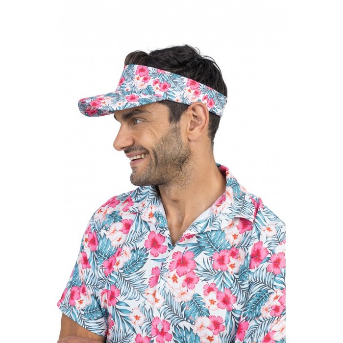Con questo cappellino Hawaii Visor con un coloratissimo design Hibiscus, dai subito un tocco tropicale al tuo look. Il vistoso motivo floreale e con palme ti fa sentire davvero in vacanza ed è l'accessorio perfetto per feste hawaiane, eventi in spiaggia, festival o feste a tema estive.