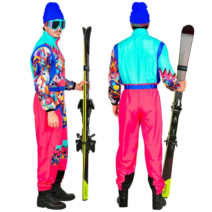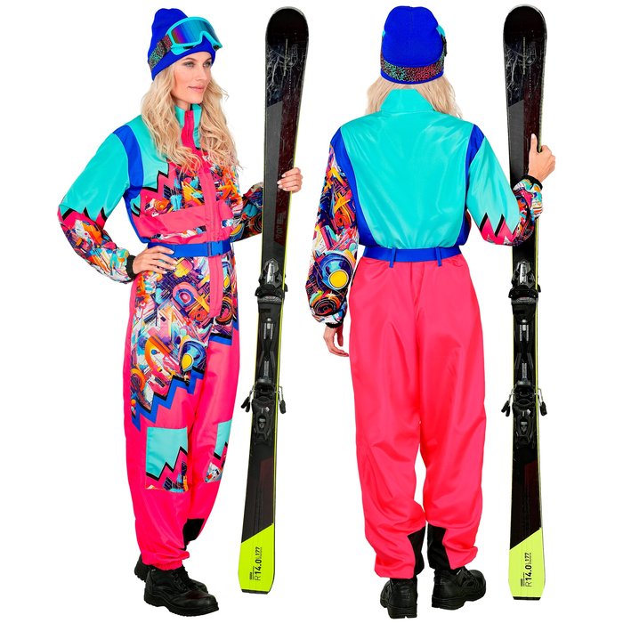 Questo costume è perfetto per chi ama i colori vivaci, l'originalità e la nostalgia. Indossata da sola o in coppia, questa tuta da sci diffonde immediatamente buon umore e autentiche vibrazioni anni '80.